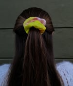 Handmade scrunchie made out of Glitter with warmth of May pocket square.