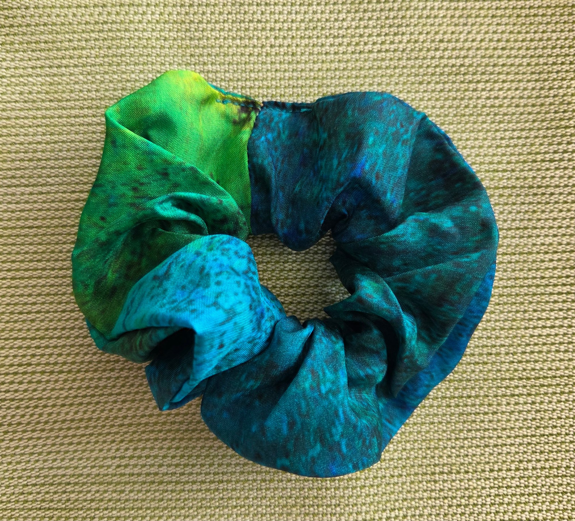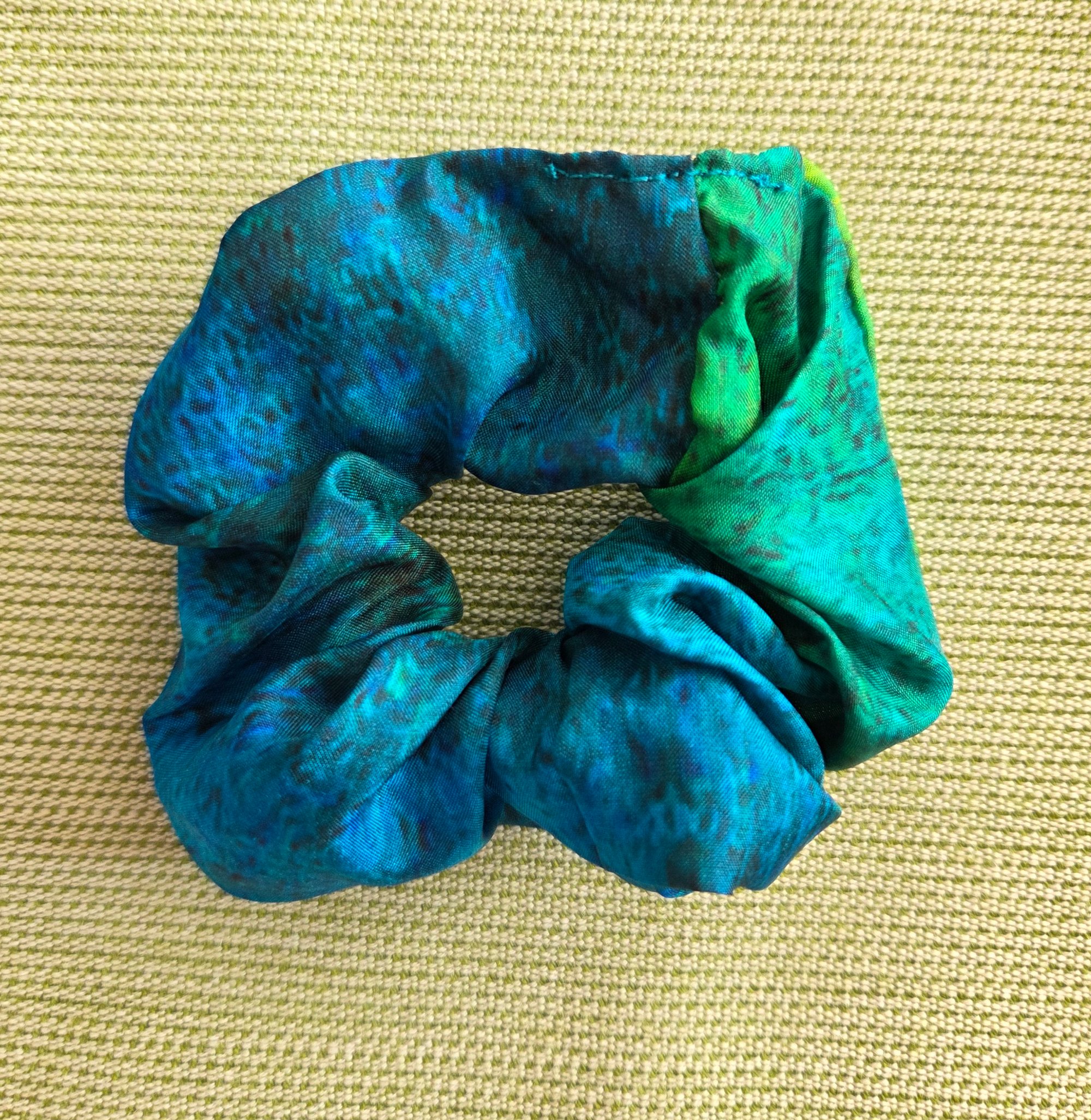 The scrunchie is sewn on a machine by me.