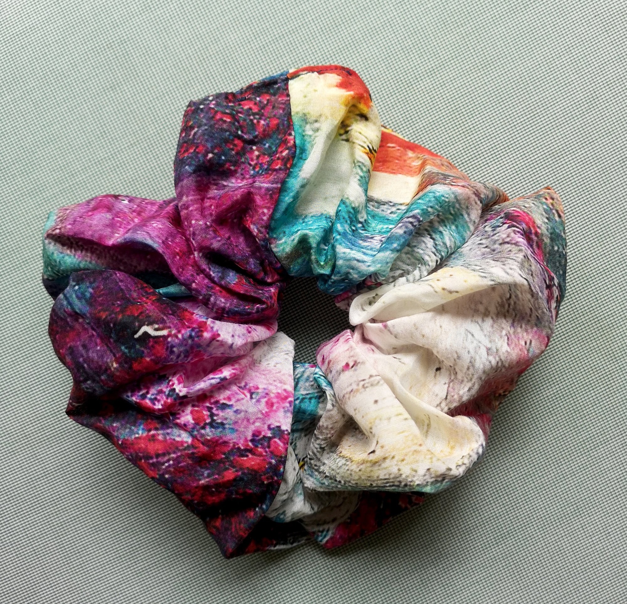 Handmade scrunchie made out of Meadow and Wood and Stream